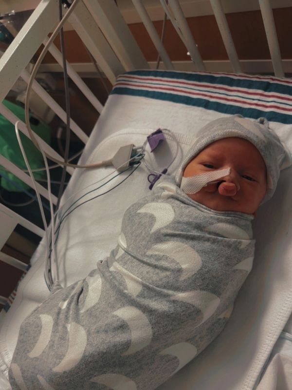 "Beau is a 27 little white boy who was given a very low chance to survive but by the grace of God we are here 106 days later. He’s had a pulmonary embolism that should have taken him, and it almost did, but he’s such a strong little fighter. Especially with everything else that has went on.We’ve been in the NICU for 106 days with no discharge date yet. I wasn’t paid for any maternity leave as we are so small employees wise so we’re still trying to play catch up with all of our bills & it’s just getting hard"